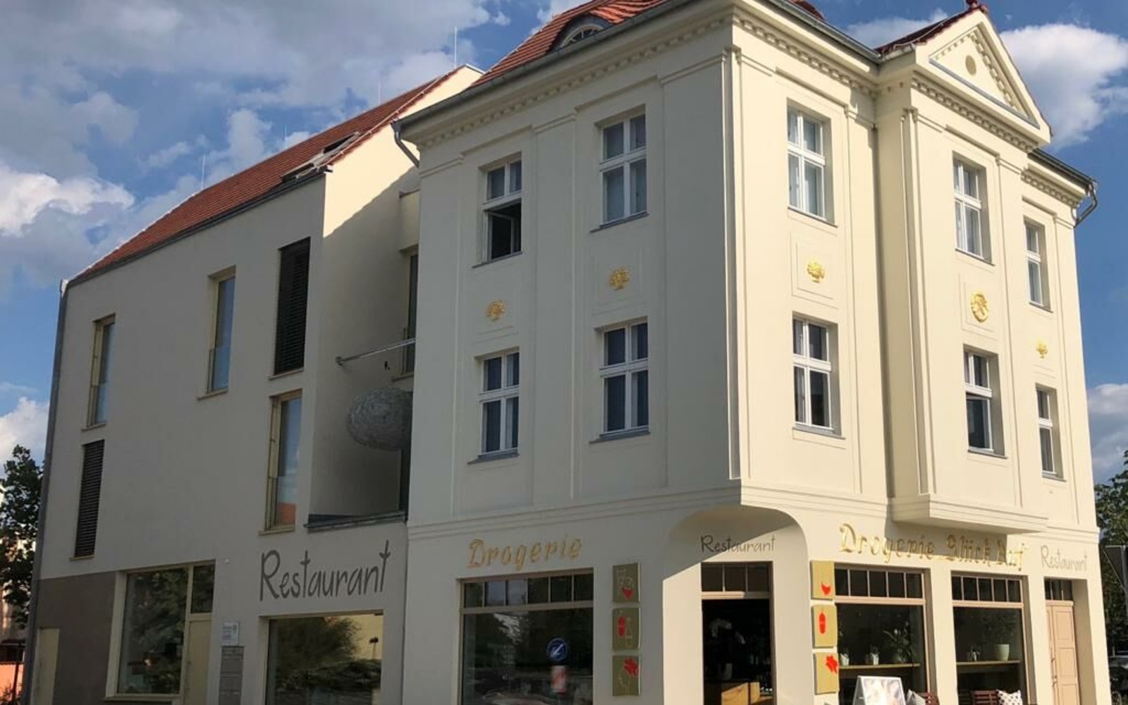 V přízemí bývalé drogerie se nachází restaurace s moderní německou kuchyní, lokálními specialitami, s decentním vlivem mezinárodní kuchyně. V jídelníčku najdete pravidelně nové speciality té nejvyšší kvality. A to vždy doplněné o vhodný aperitiv, koktejl nebo kvalitní víno. Zkrátka jasné chutě a poctivé kuchařské řemeslo. Restaurace nabízí kapacitu 38 osob a má přímý přístup na venkovní terasu. Zároveň je skvělým místem pro pořádání soukromých oslav a setkání při zvláštních příležitostech.