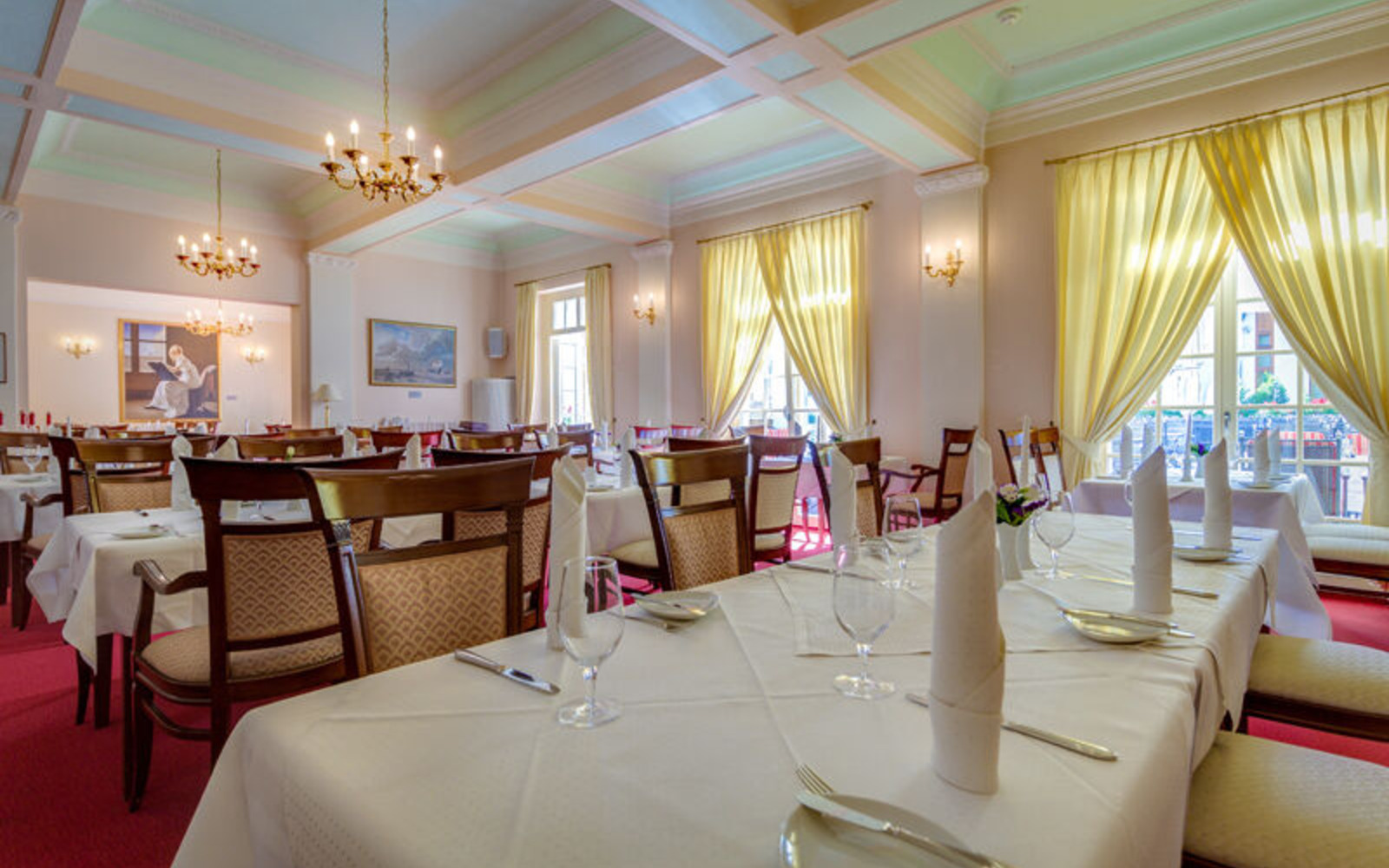 Potěšení pro tělo i duši. Stylově a s láskou k detailu zařízená restaurace, kde se díky svátečně prostřeným stolům a milému personálu každá návštěva stane zlatým hřebem Vašeho dne. Za hezkého počasí se můžete usadit na venkovní terase s romantickým výhledem do hotelového parku. Vychutnejte si zde moderní, čerstvé lužické speciality s vlivem mezinárodní kuchyně. Kuchyně hotelu SeeHotel je vyhlášená čerstvými, kvalitními surovinami a kreativitou. Na své si tu přijdou jak gurmáni, tak milovníci tradičních pokrmů.