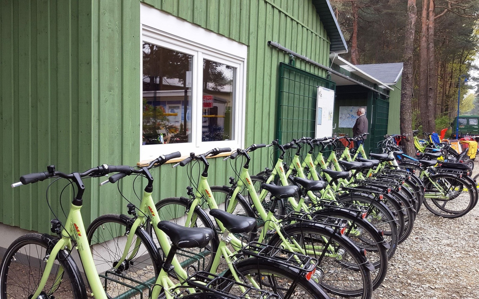 Půjčovna kol se nachází v rekreačním areálu Familienpark Senftenberger See v Großkoschenu. Ve zdejší cyklistické základně je možné si zapůjčit kola pro dospělé i děti, dětské sedačky a přídavné vozíky, elektrokola, tandemová kola, handbikes a speciální kola pro vozíčkáře s doprovodem či různé typy koloběžek a dalšího vybavení. Další služby: Skupinové pěší výlety, cyklistické a autobusové zájezdy, cyklobusy, tandemové výlety pro zrakově postižené, hmatová mapa Lužické jezerní krajiny, výlety turistickým vláčkem „Seeschlange“ vhodné i pro hosty na vozíčku. Služba dovezení a odvezení kol je k dispozici na vyžádání.