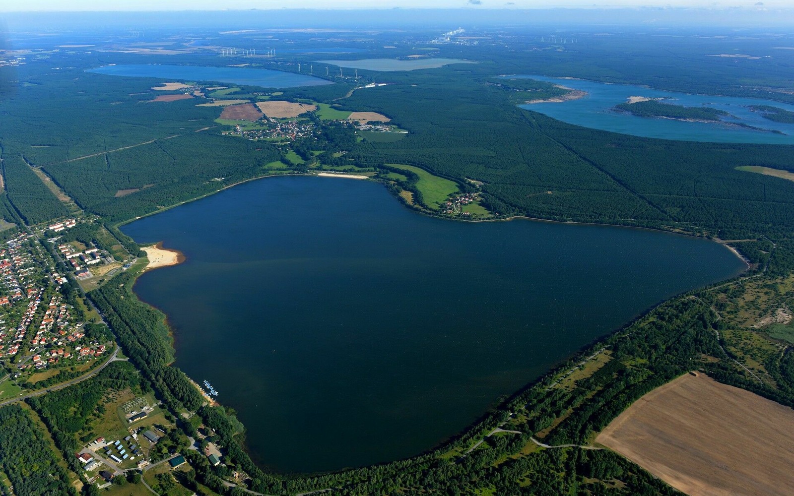 Der Dreiweiberner See entstand bis 2002 durch die Flutung des ehemaligen Braunkohletagebaus Dreiweibern. Seit 2005 ist der Dreiweiberner See nutzbar.