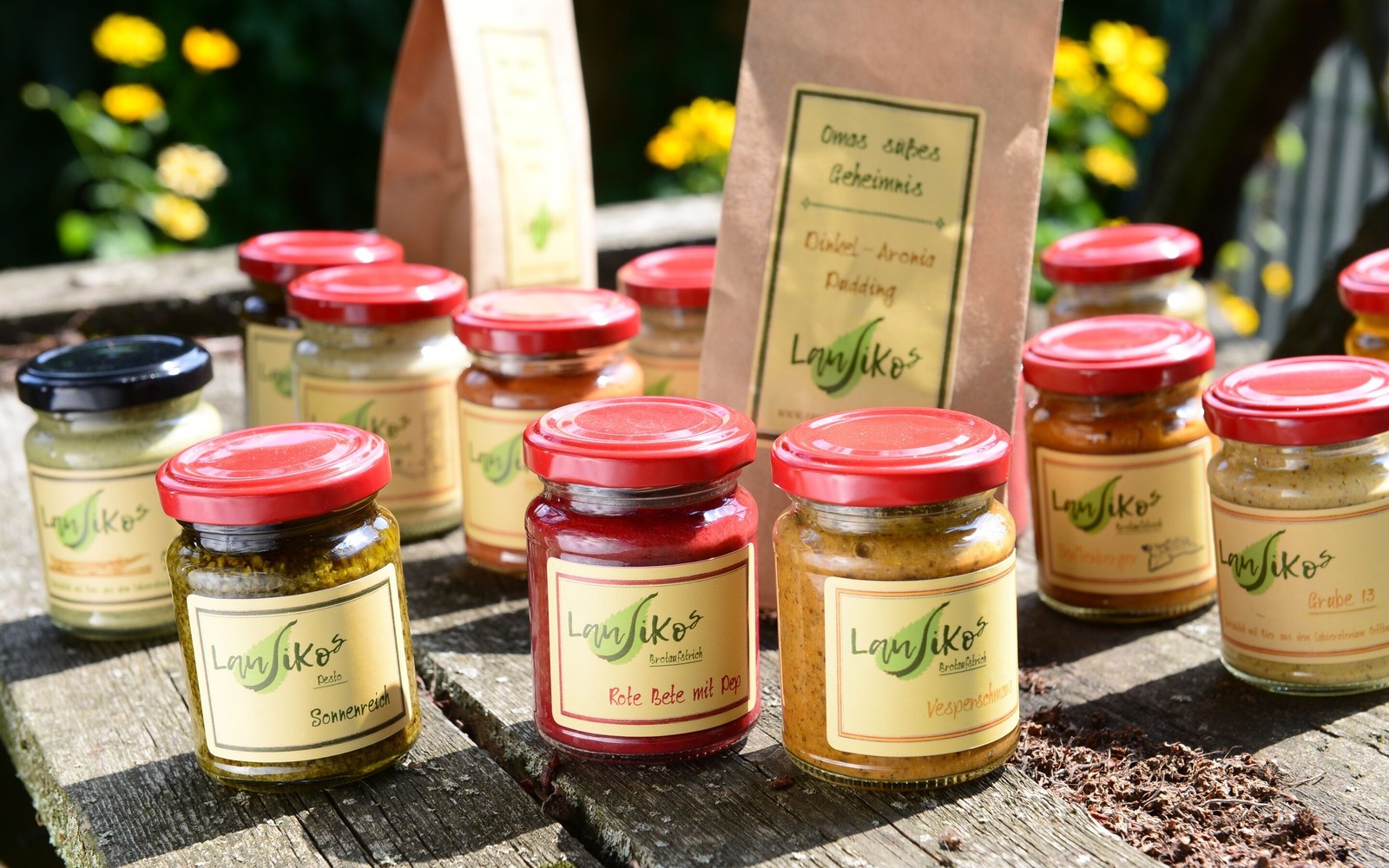 Aus hochwertigen regionalen Zutaten, wertvollen Ölen, Gewürzen und Kräutern werden Brotaufstriche, Pesto, Senf, Edelkastaniencremes, Puddingpulver auf Dinkelbasis kreiert. Aus Regionalmärkten, in Regional- und Bioläden in Bad Saarow, Beelitz, Berlin, Burg (Spreewald), Finsterwalde, Görlitz, Luckenwalde und Neschwitz (Sachsen) sowie über den gutsortierten Onlineshop sind Produkte erhältlich.