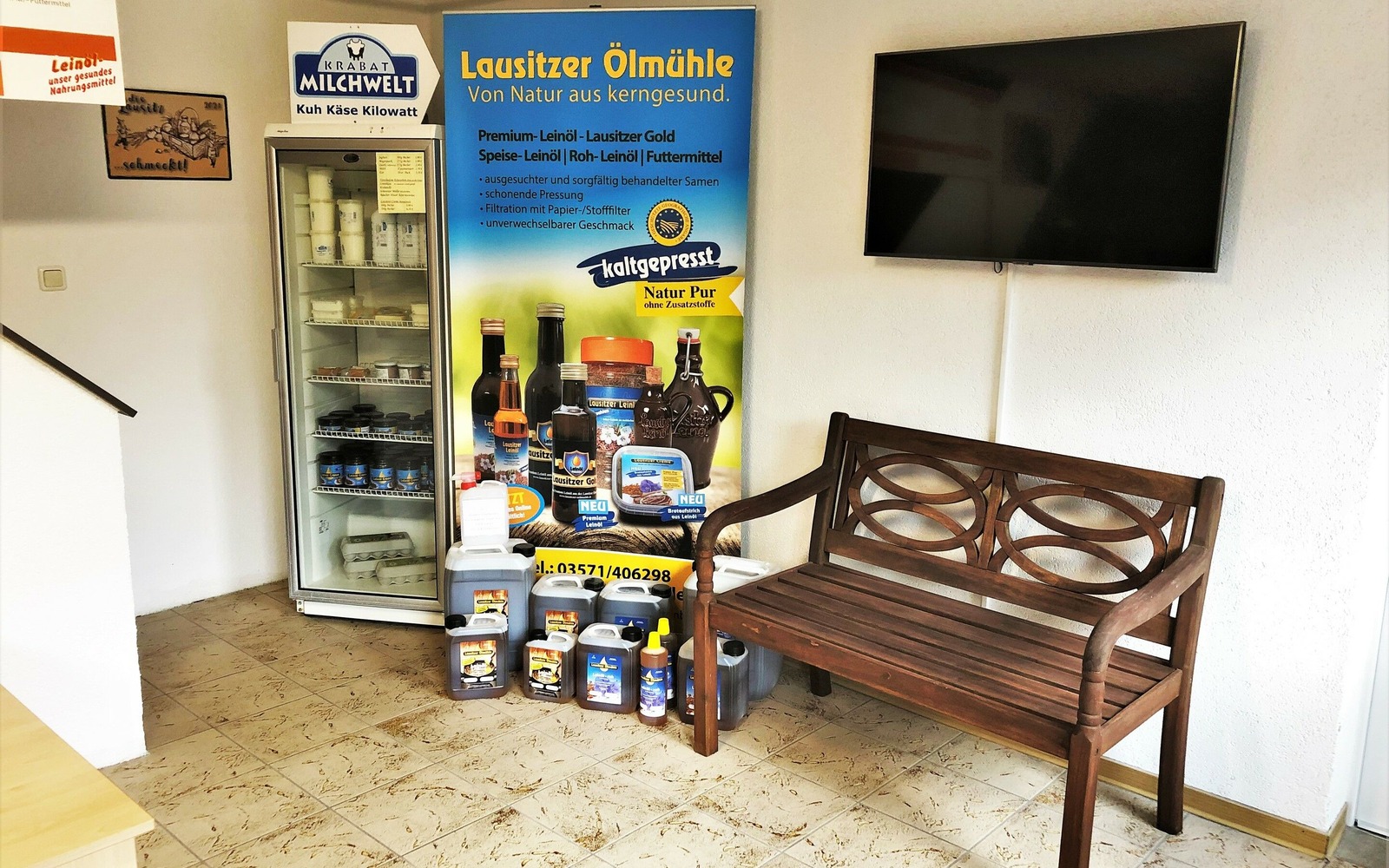 Die Lausitzer Ölmühle wurde im Jahr 1924 durch Paul Schkommodau in Hoyerswerda gegründet und produziert bis heute das beliebte Lausitzer Leinöl. An dem traditionsreichen Standort wird die Leinsaat unter der Führung von Frau Regine Jorga aufbereitet und verarbeitet. Neben dem flüssigen "Lausitzer Gold" gibt es unter anderem eine Leinöl-Creme als Brotaufstrich, Leinsaat, Leinkuchenmehl, aber auch getöpfertes oder Lasuren für die Holzimprägnierung. Wer einen Blick hinter die Kulissen werfen möchte, kann dies gerne im Rahmen einer Führung oder einer Verkostung tun, wobei eine Voranmeldung dafür zwingend erforderlich ist.