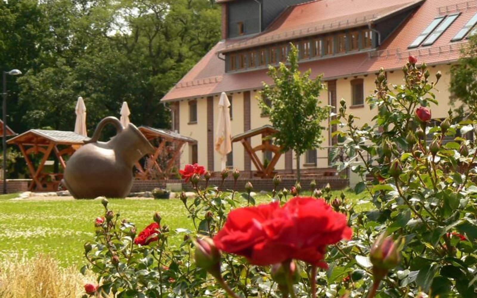 Die Gäste werden in den modern sanierten Gasträumen mit Landhauscharme bedient. Im weitläufigen Innenhof des Gutes sind auch überdachte Sitzmöglichkeiten für die Rast bei schönem Wetter vorhanden. Der Oder-Neiße-Radweg befindet sich in unmittelbarer Nähe.