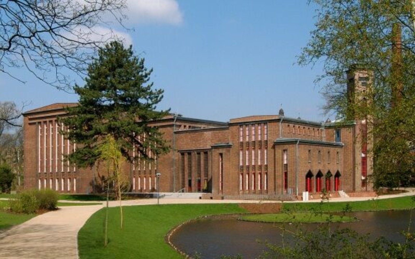 Brandenburgisches Landesmuseum für moderne Kunst Cottbus - Blick auf das Museum vom Park, Foto: Marlies Kross, Lizenz: Brandenburgische Kulturstiftung