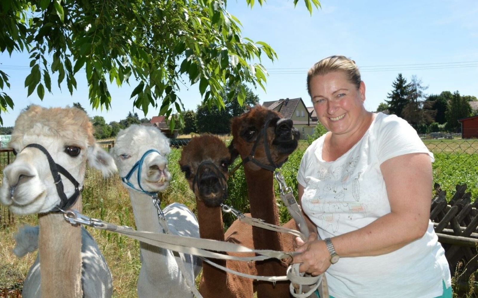 Tiergestützte Therapeutin Cornelia Schnippa mit Alpakas, Foto: Christiane Klein, Lizenz: LAUSITZleben