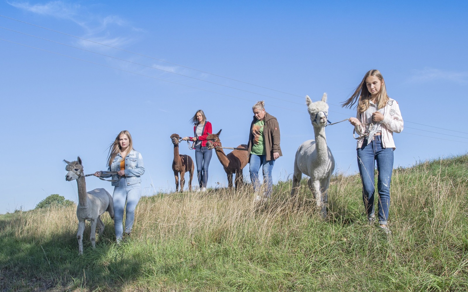 Alpakawanderung mit Gästeführerin Cornelia Schnippa, Foto: Nada Quenzel, Lizenz: Tourismusverband Lausitzer Seenland e. V.