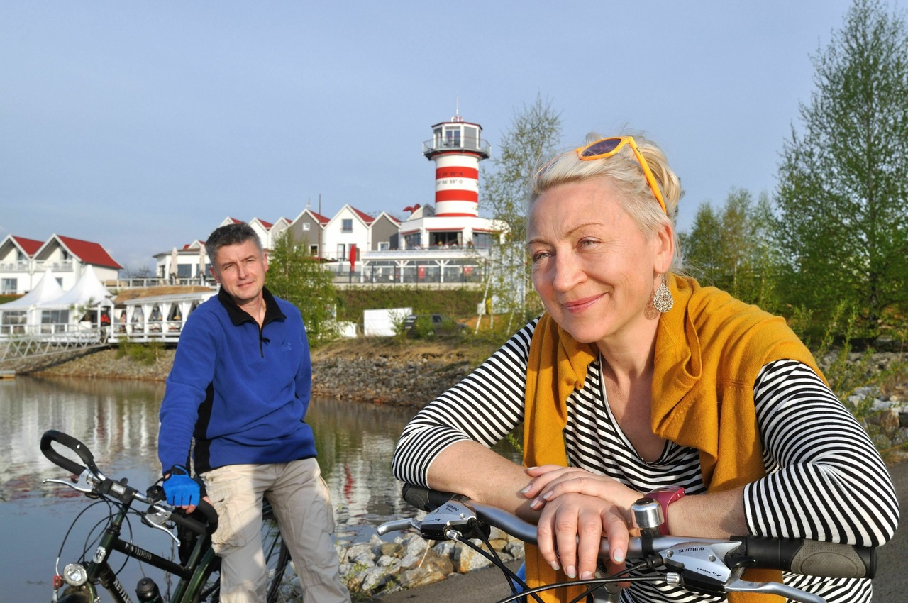 Auf dem 16 Kilometer langen Rundweg um den Geierswalder See gibt es für Radfahrer jede Menge zu entdecken. Auf dem Geierswalder See schwimmen nicht nur Boote, sondern Sie können auch in schwimmenden Ferienhäuser wohnen. Während der Radtour überqueren Sie drei Kanäle: Der Koschener Kanal ist die erste schiffbare Wasserstraße im Lausitzer Seenland, die den Geierswalder See mit dem Senftenberger See verbindet. Am Ufer des Sornoer Kanals liegt der Aussichtsturm „Rostiger Nagel", ein Wahrzeichen der Region. Dritter im Bunde ist der Barbara-Kanal, der den Partwitzer See an den Geierswalder See anschließt.