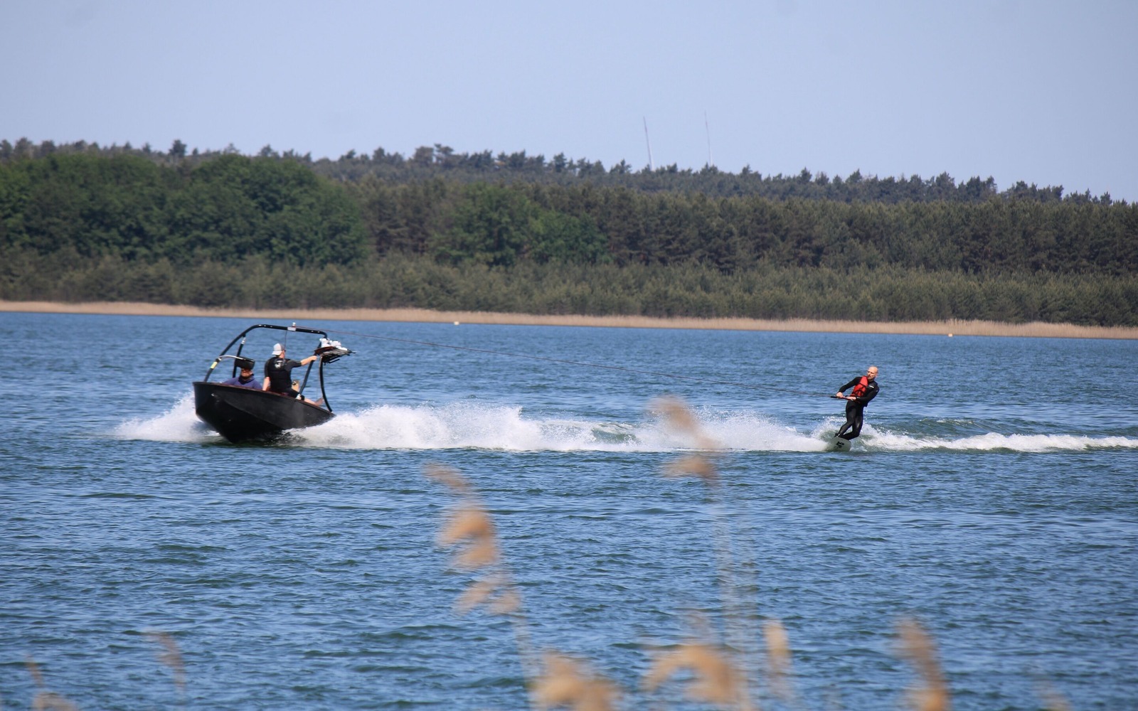 Bei Wake and More am Geierswalder See kommen nicht nur Einsteiger, sondern auch Fortgeschrittene ganz auf Ihre Kosten. In einem großen durch Bojen abgetrennten Bereich kann der Wasserspaß entweder auf Wasserski oder Wakeboard hautnah erlebt werden. Für ganz Mutige ist auch Wakesurfen möglich, wo man ohne Seil auf der Welle hinter dem Boot entlang surft.