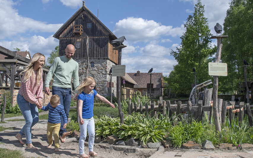 Schon einmal schwarzes Eis probiert? Im Erlebnishof KRABAT-Mühle in Schwarzkollm ist es das Erlebnis für Kinder! Inspiriert von der sorbischen Sage des Müllerburschen Krabat, der schwarzes Zauberhandwerk zum Guten wendet, wird das Speiseeis mit Pflanzenkohle eingefärbt. Auch die Buttermilchplinsen der gehören in der Bauernstube der Mühle zum Traditionsgericht. Das Mühlen-Ensemble besteht aus Scheunen, Stallungen und Wohnhäusern, die authentisch vom bäuerlichen Leben längst vergangener Tage erzählen. Bei Familienführungen, Kreativangeboten und auf dem Erlebnispfad tauchen auch die Jüngsten in regionales Brauchtum und die schaurig-schöne Sagenwelt der Sorben ein.