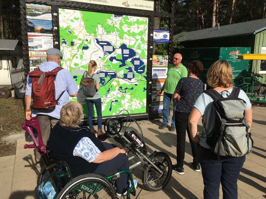 Die Touristiker aus den brandenburgischen Reiseregionen nahmen während des Treffens einige barrierefreie Angebote im Senftenberger Ortsteil Großkoschen, wie den Ferienhof Radlerslust, den Familienpark Senftenberger See, den Radstützpunkt von iba-aktiv-tours mit der großen Blindenkarte sowie das barrierefreie Hafencamp Senftenberger See unter die Lupe. Außerdem ging es mit Fahrrädern, E-Bikes und Handbike auf dem 18 Kilometer langen Rundweg um den Senftenberger See, der als Handbike-Strecke vom Tourismusverband Lausitzer Seenland e.V. erhoben wurde.