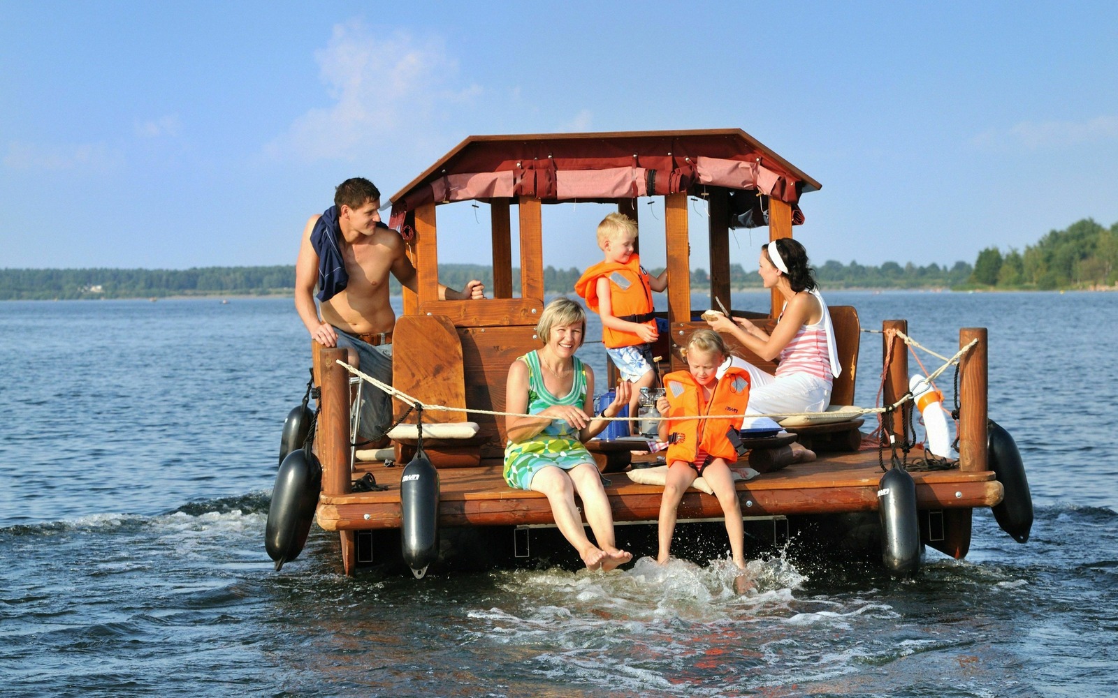 Romantik für Paare, Ferienabenteuer für Familien: Eine Mehrtagestour mit dem Wohnfloß ist ein Erlebnis. Der Anbieter Lausitzfloss vermietet ab Hafencamp am Senftenberger See acht PS starke, fast sechs Meter lange führerscheinfreie Flöße mit vier Schlafplätzen in der Kajüte. Mit dem Floß können Gäste vom Senftenberger, zum Geierswalder bis zum Partwitzer See tuckern. Am Abend kann das Gefährt unter anderem an den Steganlagen am Stadthafen Senftenberg, am Hafencamp sowie am Wasserwanderrastplatz am Geierswalder See angelegt werden. Auch auf der Talsperre Spremberg, im Norden des Lausitzer Seenlandes, sind Floßfahrten möglich.