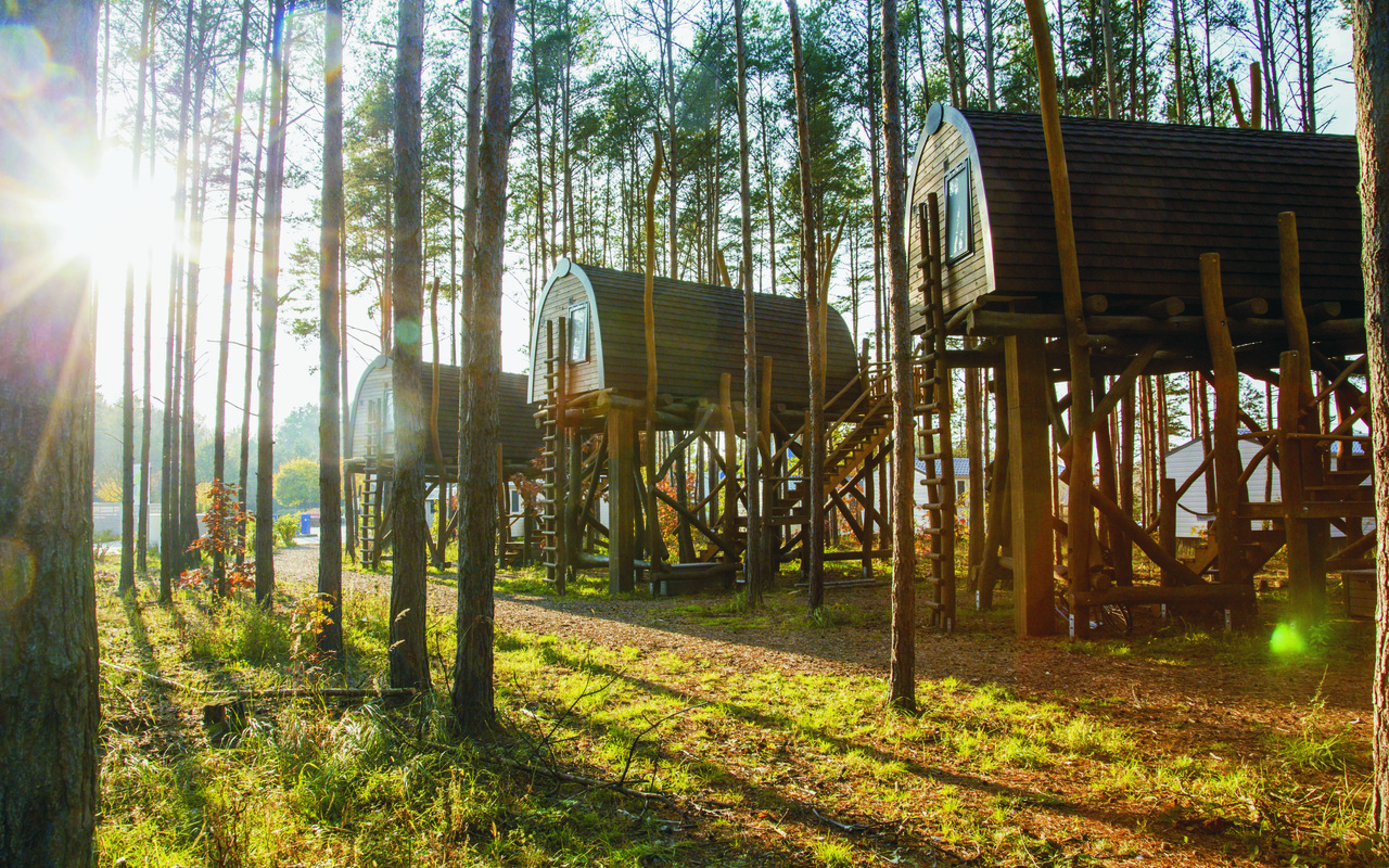 Baumhäuser im Hafencamp Senftenberger Se, Foto: Zweckverband Lausitzer Seenland Brandenburg, Harry Müller