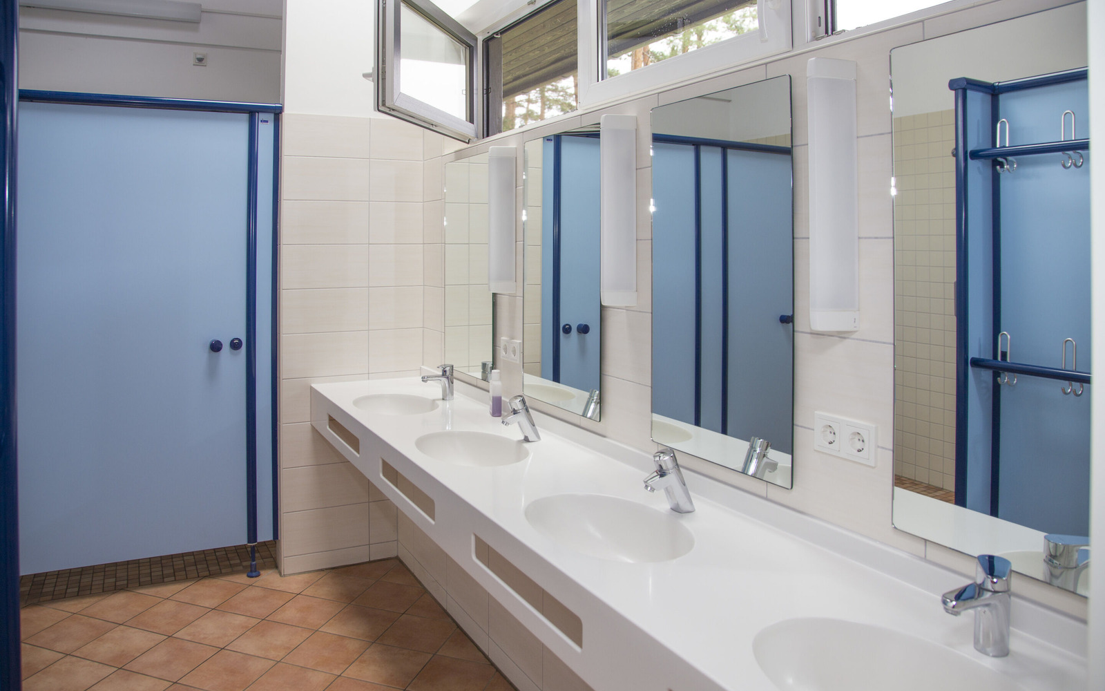 Im zentral gelegenen Servicegebäude findet sich neben modernen sanitären Einrichtungen auch eine Kochgelegenheit (Utensilien zum Kochen sind selbst mitzubringen). Dort befinden sich auch eine Waschmaschine und ein Trockner.
