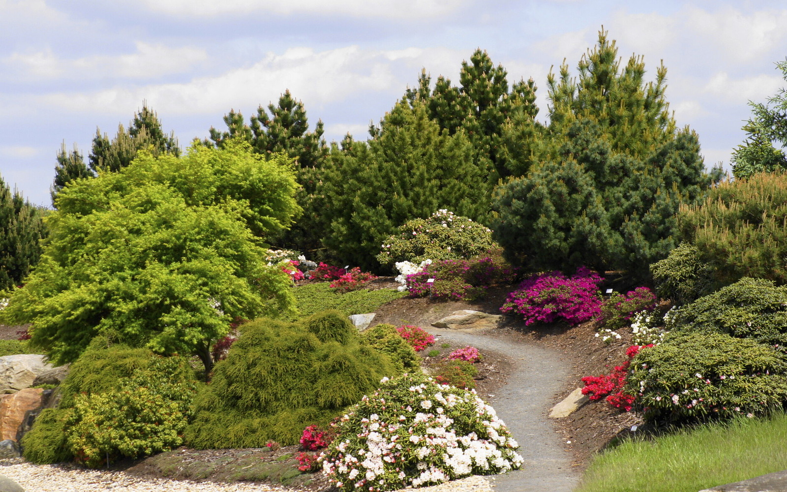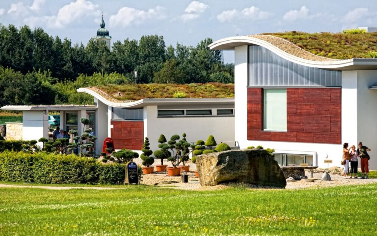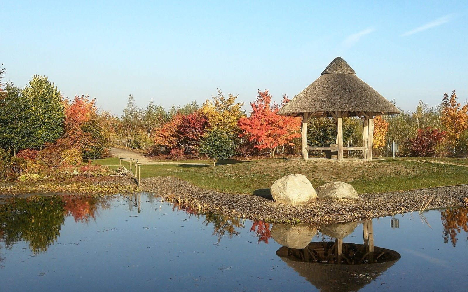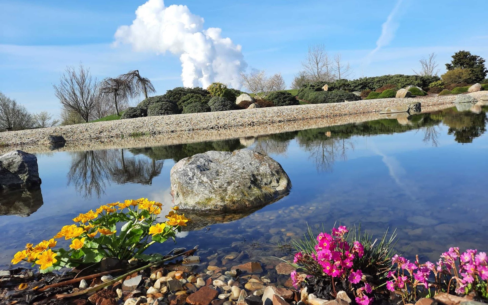 On the 20 hectare site, visitors can explore seven park areas: The stone garden, pond garden, heath garden, heath moor, forest lake, rock garden and Little Scandinavia. The "Feldzeichen" artwork stands proudly on the highest peak: From here, there is a fantastic view across the Lausitz region. Slightly hidden away in a valley cutting in the park, lies "Die Wüste" (The Desert), a carefully created adventure playground with boulders to climb on, the labyrinth in the Caravanserai and an aquatic playground around the bucket well.