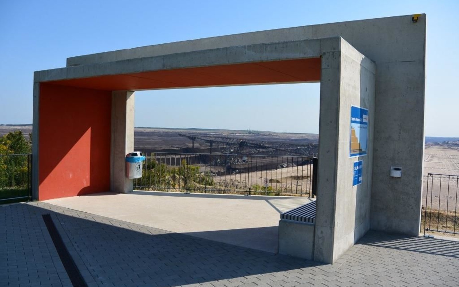 The “Welzow Window” viewpoint is located on the eastern edge of the town of Welzow and as a fixed viewing platform offers a unique view of the active Welzow-Süd surface lignite mine. Information boards on the geology of the region, the technology of surface mining and other tourist attractions in the town of Welzow are a source of additional helpful information at the viewpoint.