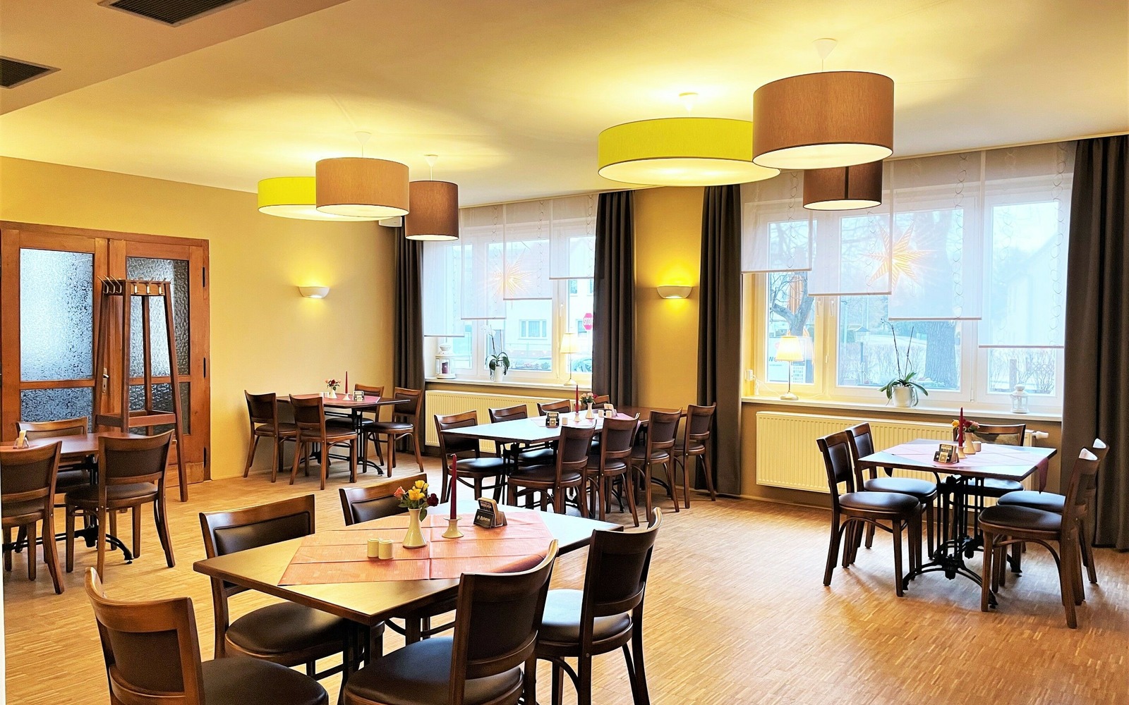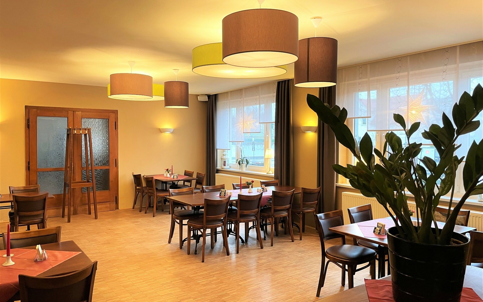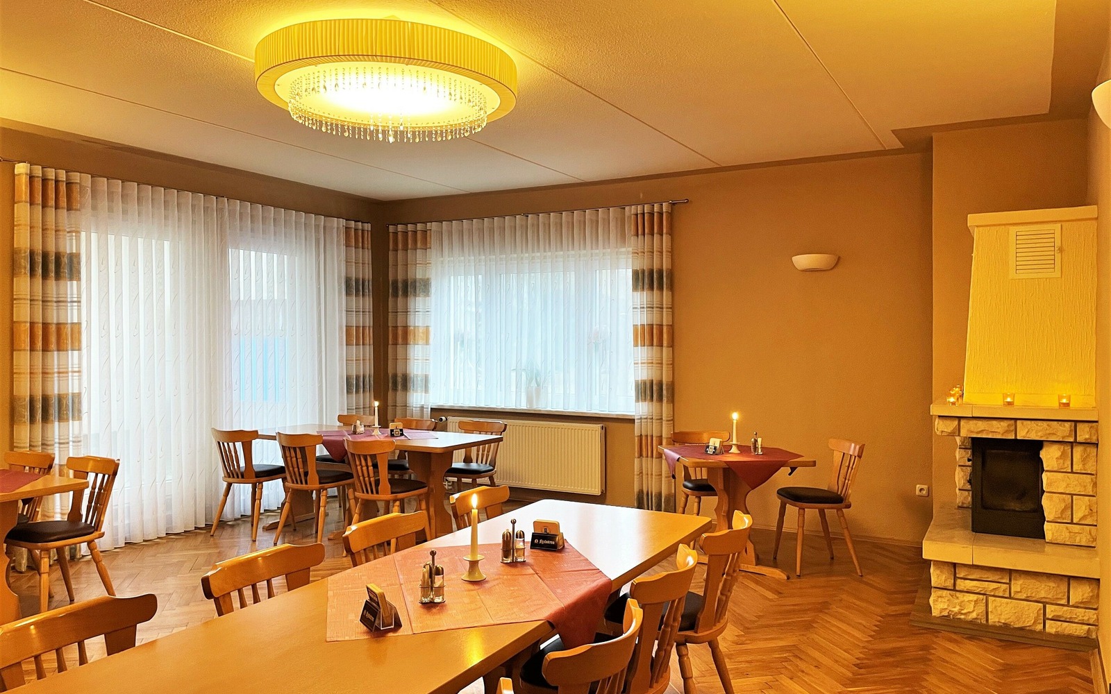 Today's restaurant and guesthouse "Zur Friedenseiche" has been in the family since May 1931 and was acquired by the grandfather Karl Schenk. After the property had been expanded again and again, demolition and new construction of the restaurant building were on the agenda with the 2nd generation in the 1970s. It was not until the mid-1990s that the guesthouse was then expanded in the attic of the building. Today the restaurant with the hall, the fireplace room, the guest room and the beer garden offers space for family celebrations, relaxed lunches or dinners with business partners or friends and much more. Our hall is popular for larger events such as weddings, dances, graduation parties and concerts. From May to the end of October, the beer garden is open and the crown of the "Peace Oak" provides a shady spot for guests.