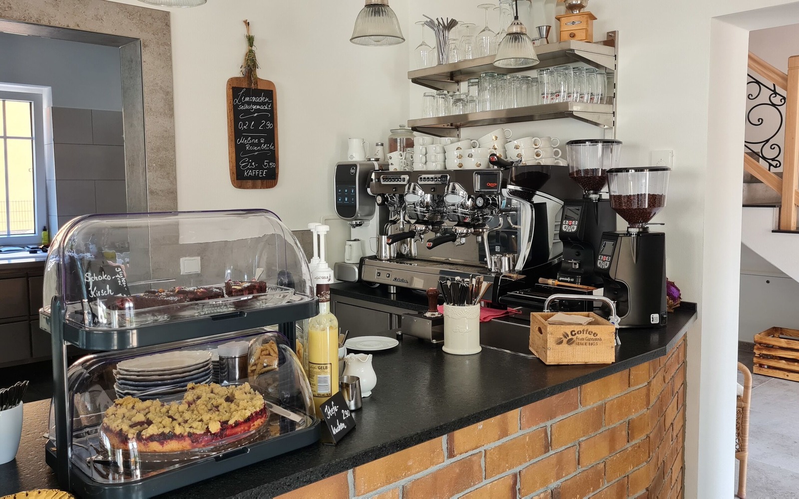 The farm café offers homemade cakes and various coffee specialities as well as tea or homemade lemonades. Selected small items can also be purchased in the small café shop.