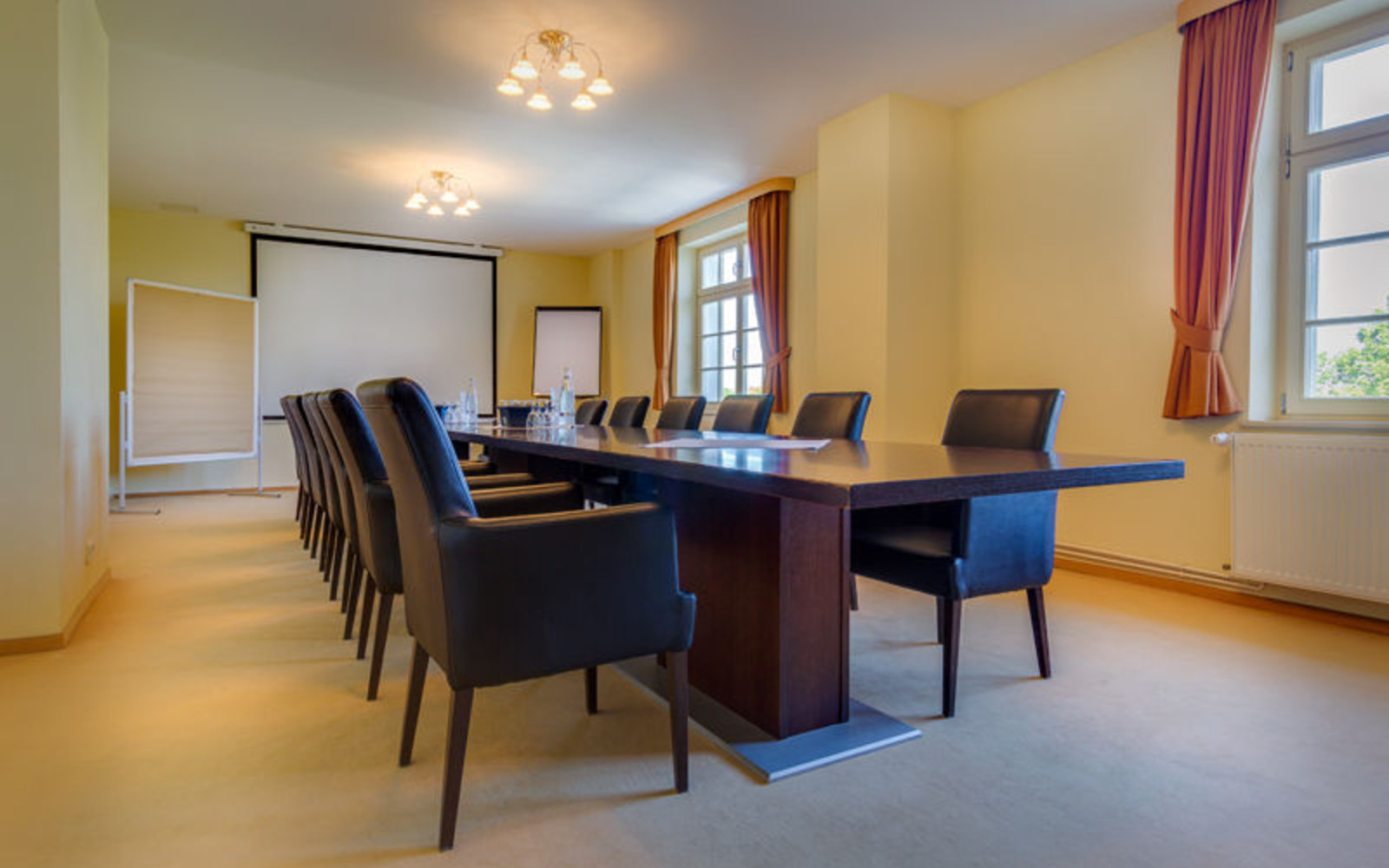 The spacious dining area holds up to 50 people. In the summer months, the sun terrace overlooking the countryside is open seating a further 60 people. The hotel overlooks Lake Großräschener See. Apart from being a hotel, the building also houses the Counterfeiters’ Museum. Thee are many cycle paths and hiking trails in the surrounding area.