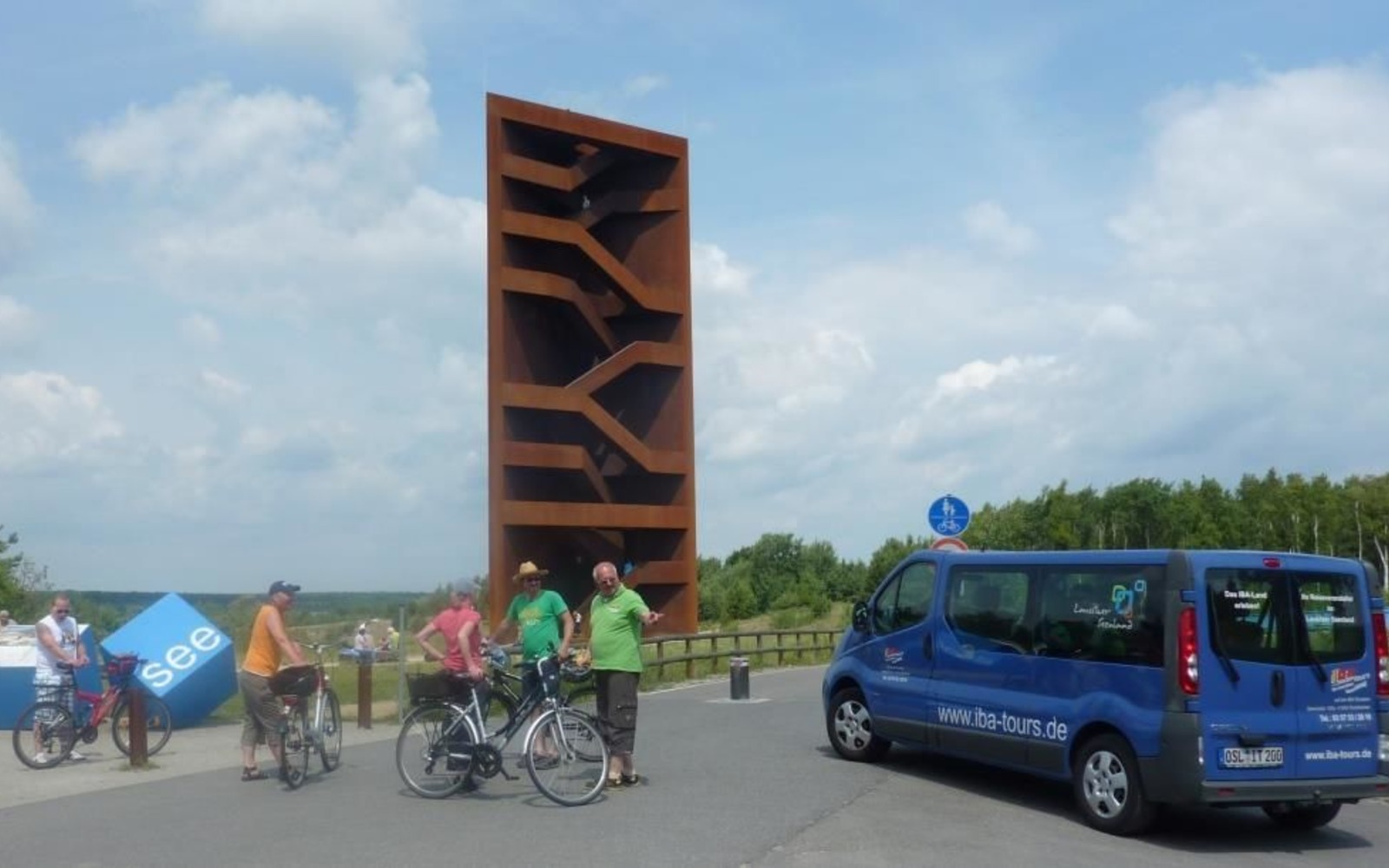 Bus und Kleinbahn Seeschlange am Aussichtsturm "Rostiger Nagel", Foto: iba-tours