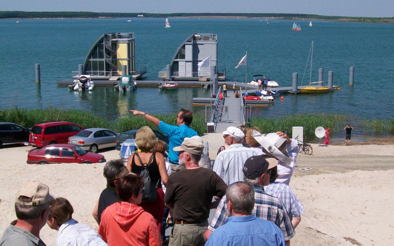 Bustour zu den schwimmenden Häusern auf dem Geierswalder See, Foto: iba-tours