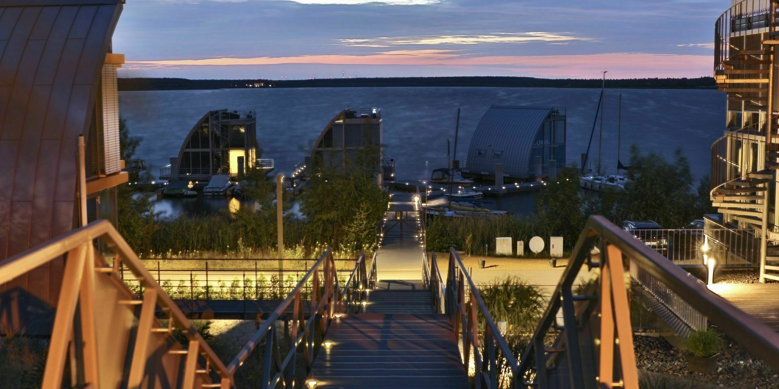 The first floating homes on Lake Gräbendorf and Lake Partwitz were unveiled in 2006. The floating holiday home on Lake Partwitz was created as the model for a whole floating community. Plans are in place to launch an innovative home on Lake Bergheide too, with a prototype for a highly autonomous floating house set to take to the water in autumn.